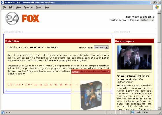Finalmente temos a página sendo exibida com as WebParts em suas posições iniciais. Lembre-se que neste momento o usuário ainda não está logado na aplicação e, conseqüentemente, não poderá modificar o layout (drag-and-drop). Quando a página é carrega inicialmente ela estará com o seu modo de visualização definido como BrowseDisplayMode e o drag-and-drop não resultará, porém o uso dos verbos (veremos a seguir) poderá ser utilizado sem problemas.