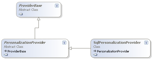 A classe WebPartPersonalization armazena internamente um objeto do tipo PersonalizationProvider que, durante a execução, armazena uma referência ao provider especificado no arquivo Web.Config. Essa arquitetura faz parte de um padrão criado pela Microsoft denominado Provider Model, que já falamos sobre ele neste artigo. O ASP.NET fornece um provider para que os dados sejam salvos no banco de dados SQL Server. A classe concreta chama-se SqlPersonalizationProvider e, podemos ver através da imagem abaixo a hierarquia das classes, desde a abstrata ProviderBase até a classe concreta para SQL Server. Se quisermos criar um provider de personalização customizado basta herdarmos da classe abstrata PersonalizationProvider e customizarmos para o repositório desejado.