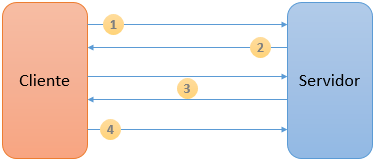 • Passo 2: O servidor aceita a requisição e passa ao cliente uma chave para indicar a efetivação da conexão.